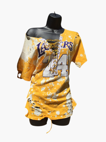 Handmade Los Angeles Lakers 24 Lace Up Distressed T-Shirt