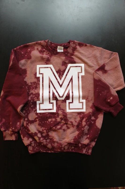 Maroon and White Morehouse "M" Crew Neck Unisex Light Distress Sweatshirt