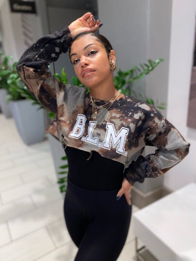 Support a Cause! Bold B.L.M. (Black Lives Matter) Handmade Crew Neck or Off Shoulder Super Crop Sweater