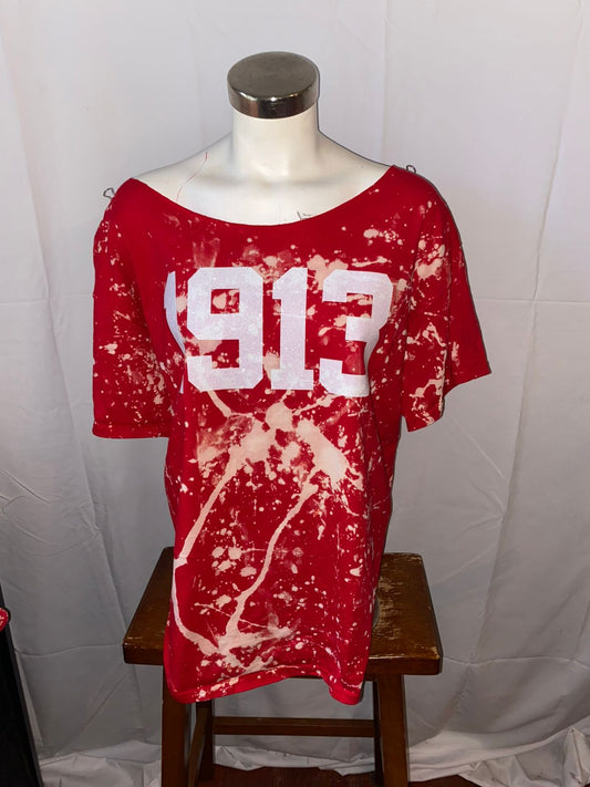Glitter! Handmade 1913 Red Hand Bleached Crewneck or Off Shoulder T-Shirt
