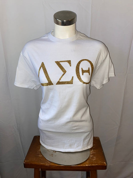 The Starlette Golden Glitter ΔΣΘ DST Greek Symbols on White Classic T-Shirt