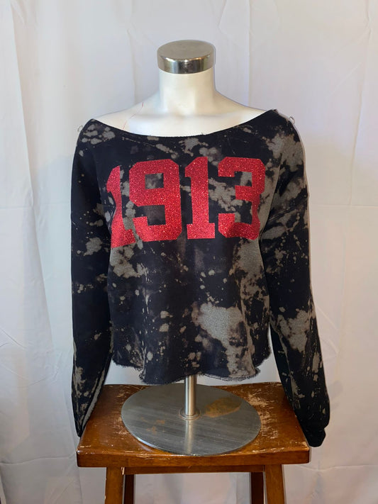 Handmade 1913 DST Red Glitter on Black Customizable Sweatshirt - Crew Neck or Off Shoulder