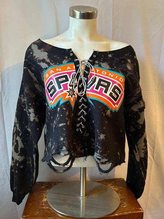 Retro Handmade San Antonio Spurs Lace Up in Black Bleached Colorway