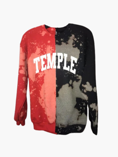 Handmade Temple University Half and Half Unisex Crewneck Sweatshirt