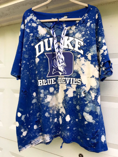 Handmade Duke Blue Devils Lace Up Distressed T-Shirt