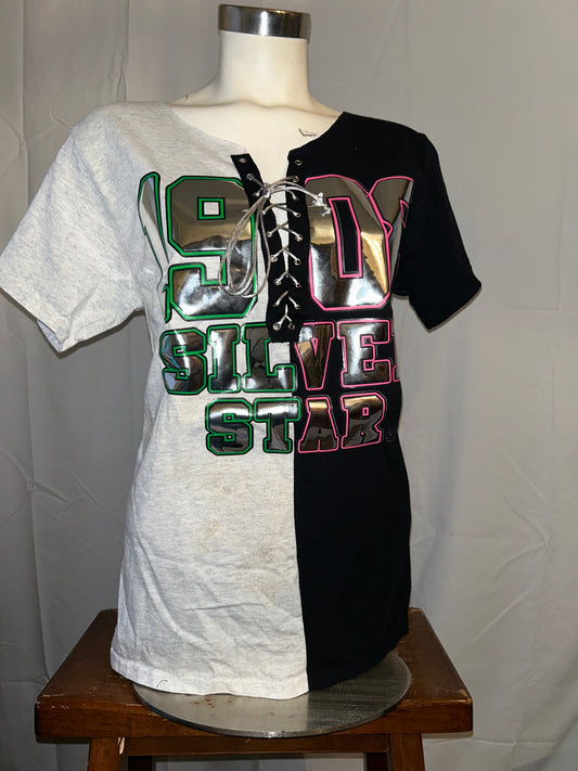 Handmade 1908 Silver Star Half and Half Lace-Up T-Shirt
