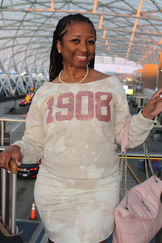 Handmade 1908 Rose Gold Glitter on Cream Crew Neck or Off Shoulder Sweatshirt