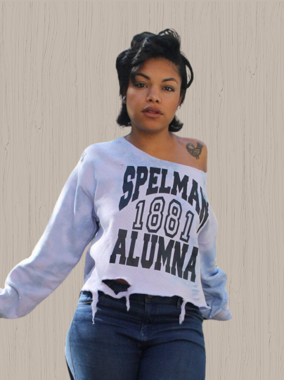 Handmade Spelman College Crew or Off Shoulder Full Length or Cropped Sweatshirt