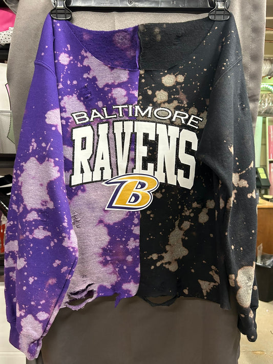 Handmade Baltimore Ravens Black Glitter of Black Half and Half Sweatshirt