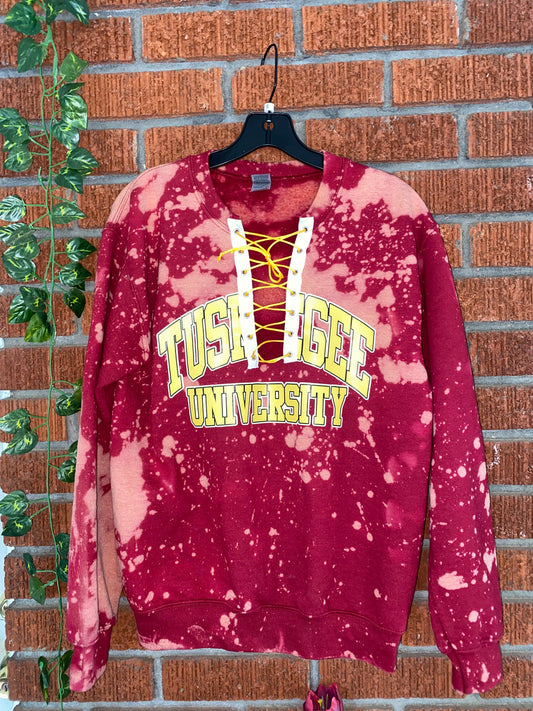 Handmade Tuskegee University Crimson U Neck Lace Up Sweatshirt