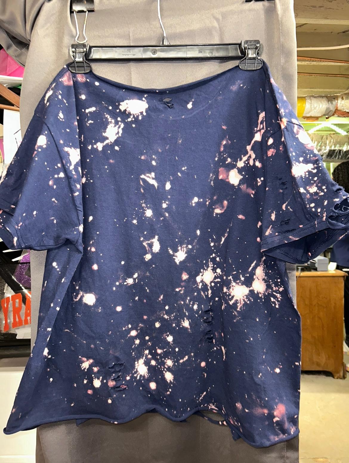 Distress refers to the small rips and tears we add throughout the garment to give the design a more “aged” or “vintage” look.