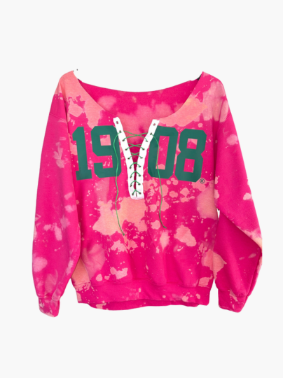 This item is hand bleached and hand sewn by Cami and her team. A fashionable twist on the classic sorority sweatshirt, this lace-up is a perfect choice for homecoming and reunions! This item is hand-sewn and hand-bleached by Cami (that's me!) and the team.