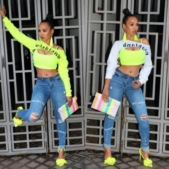 Handmade Oakland Long Sleeve Super Crop T-Shirt