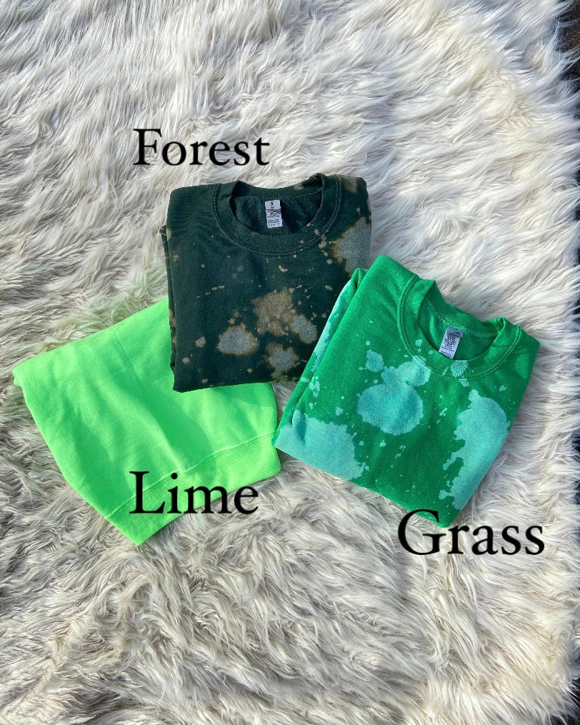 This involves the process of using bleach or a bleach solution to remove or lighten the color of the fabric in certain areas, creating unique patterns or designs on the shirt. It's often used for creating acid wash or tie-dye-like effects, and the outcome can vary depending on the technique and concentration of bleach used. This process is commonly used in custom clothing to achieve specific aesthetics or styles on garments. Please note that due to the handmade nature of the bleaching process, each item will be uniquely different.