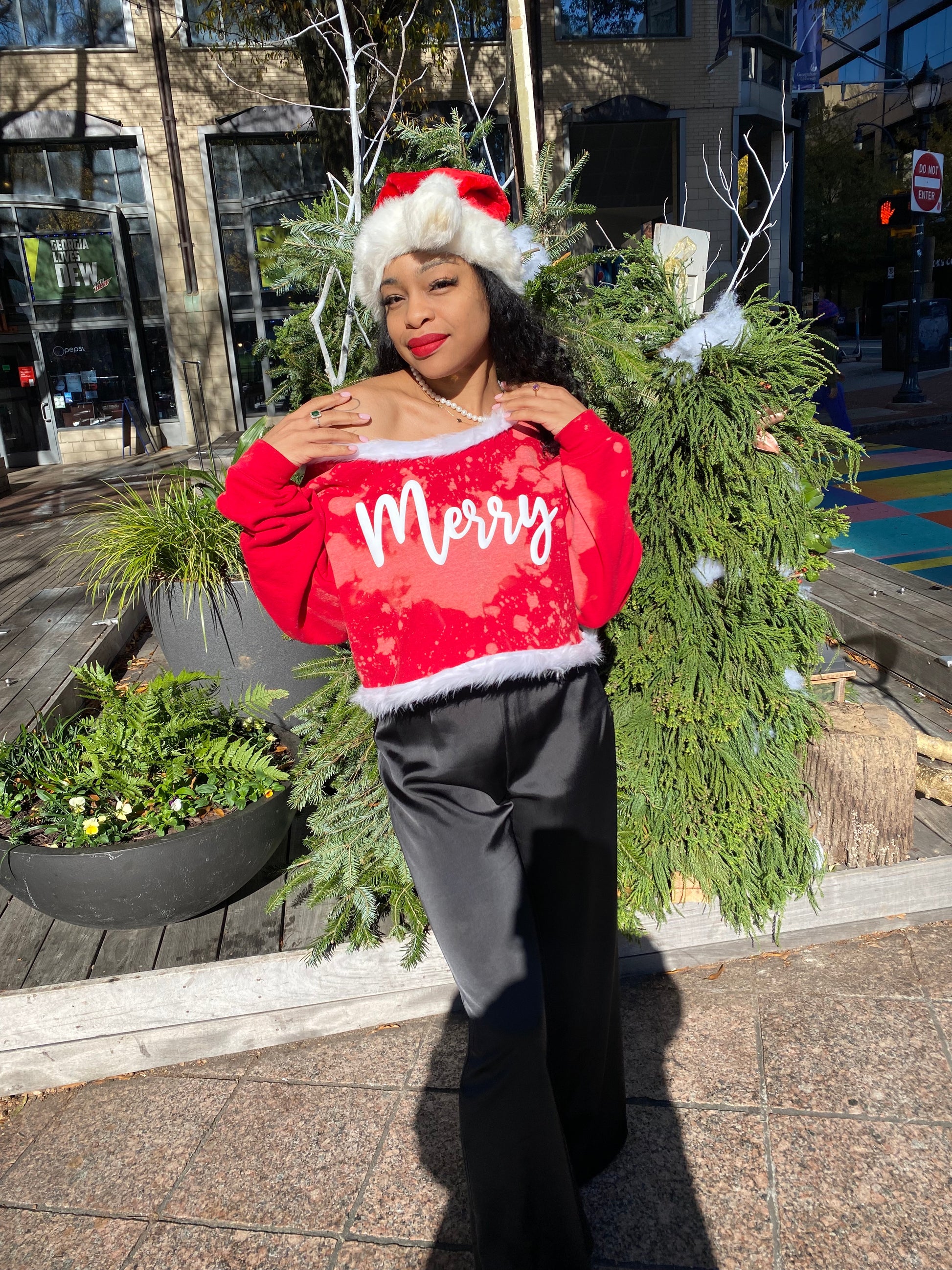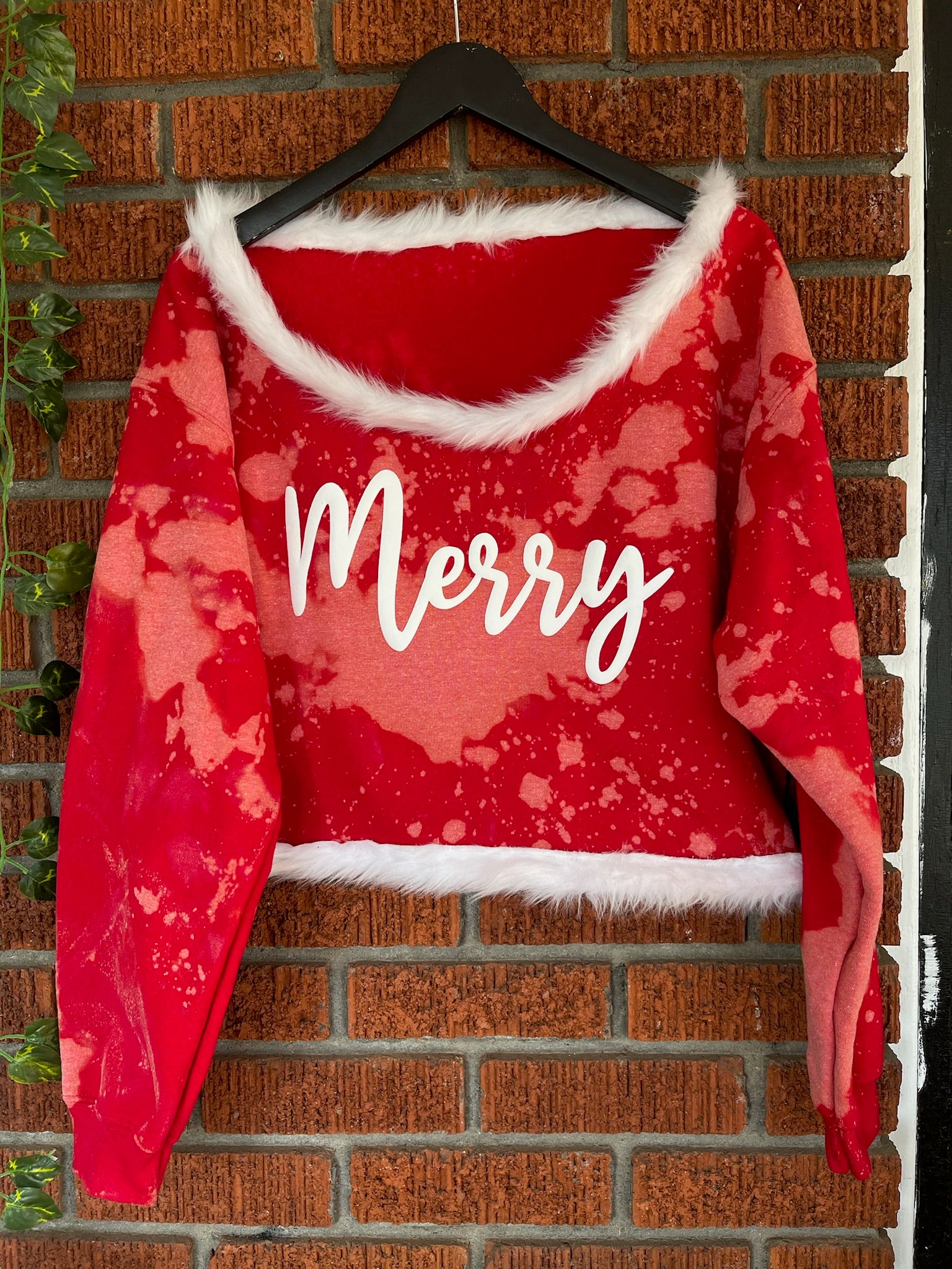 Elevate your holiday style with our exclusive handcrafted creation, the "Festive Frost 'Merry' Cropped Hand Bleached Holiday Sweatshirt". Designed and meticulously hand-bleached by Cami and her talented team in Atlanta, GA, this sweatshirt embodies the spirit of the season with a touch of handmade charm.