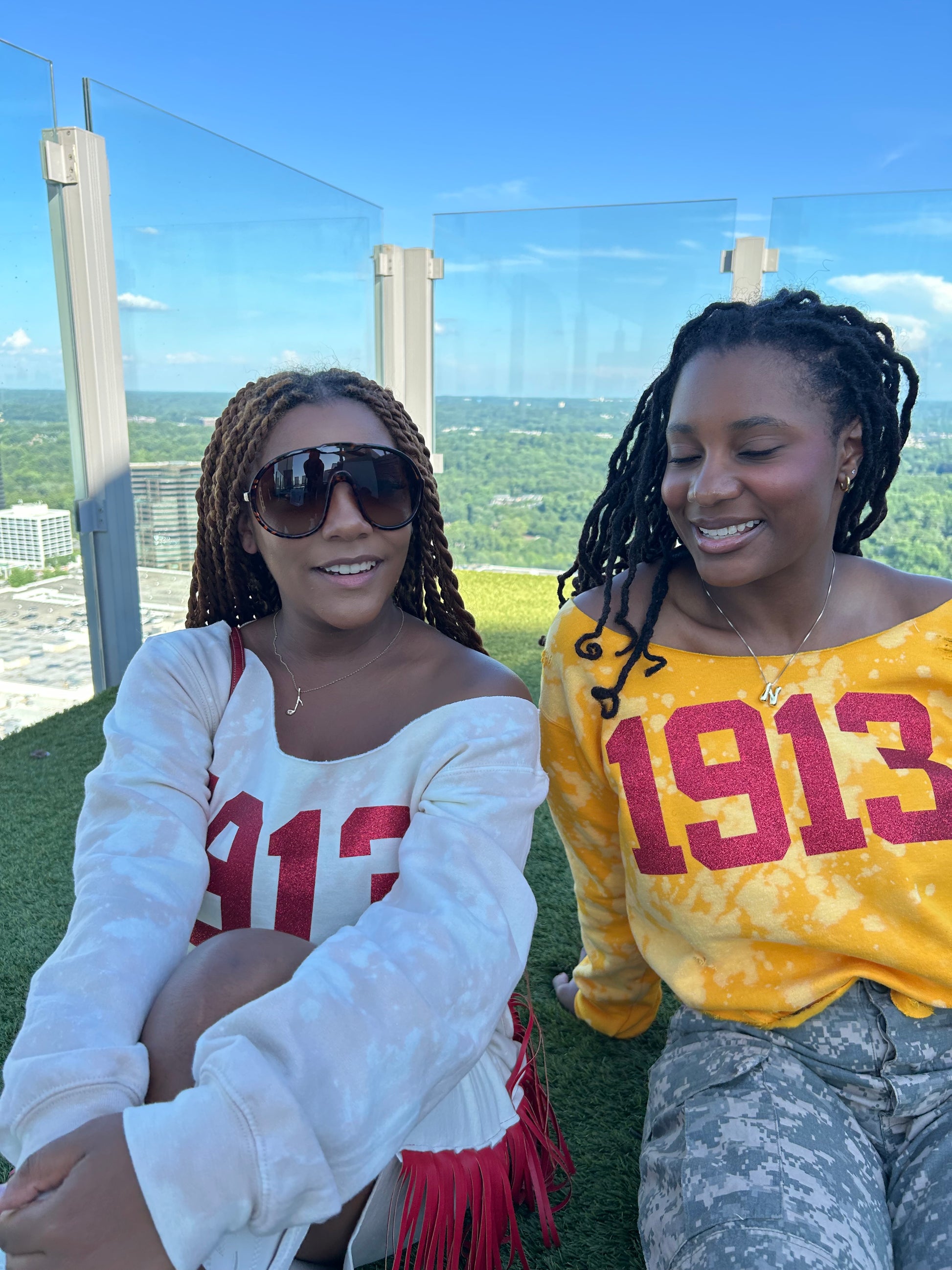 This Delta Sigma Theta 1913 design is hand-bleached and hand-distressed by Cami and her design team in Atlanta, Georgia. Pictured is Off Shoulder, Full Length, with No Distress. Get it customized in a style that's right for you!