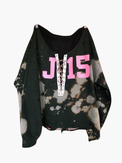 Handmade AKA J15 Forest Green Pink Lace Up Sweatshirt