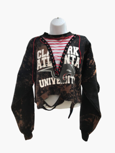 Handmade Clark Atlanta University Keep The Collar Lace Up Sweatshirt Distressed