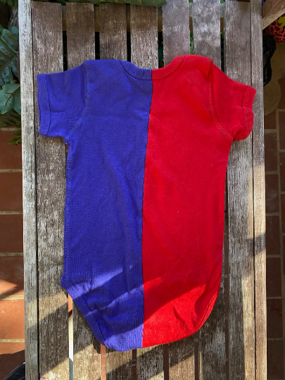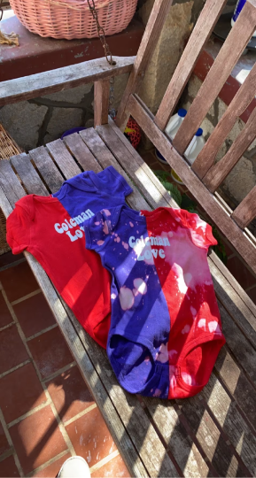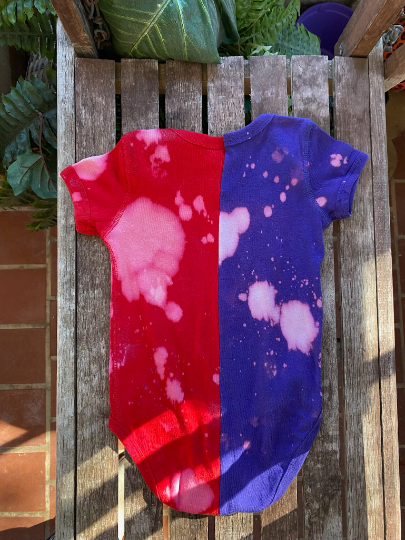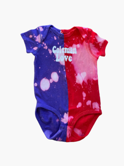 This item is hand bleached and hand sewn by Cami and her team. It is designed to match our half and half tee and sweatshirt, which are also offered in this exact color way. This is the cutest little outfit, and makes for such a great gift!