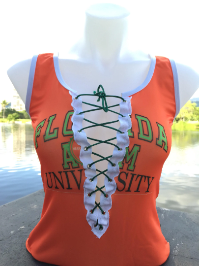 Handmade FAMU Lace Up Bodysuit - Front and Back Design