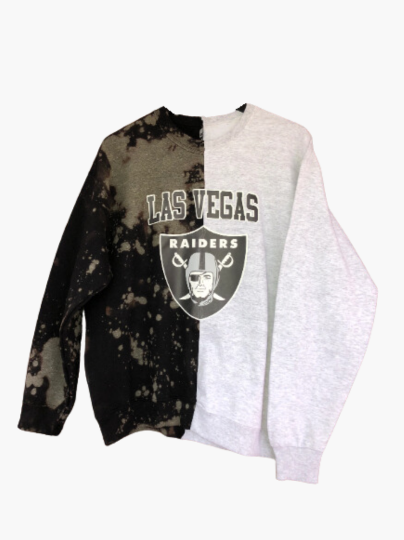 Handmade Las Vegas/Oakland Raiders Half and Half Crew Neck Sweatshirt