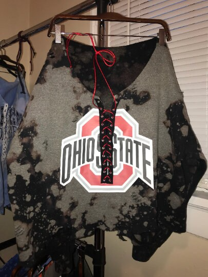 Handmade Ohio State University Lace Up Distressed Sweatshirt