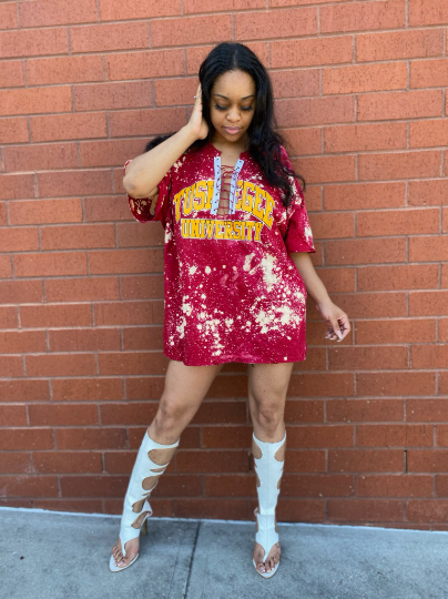 Handmade Tuskegee University Distressed U-Neck Lace-Up T-Shirt