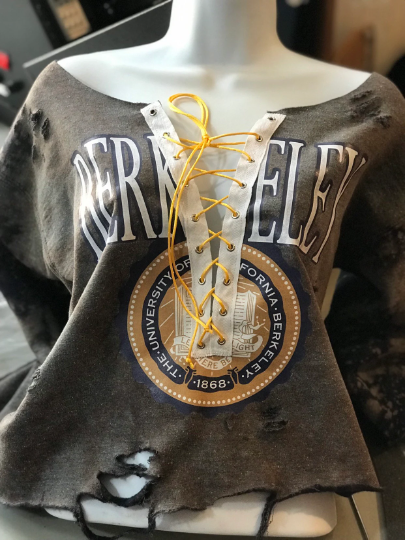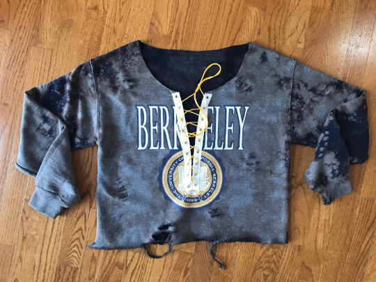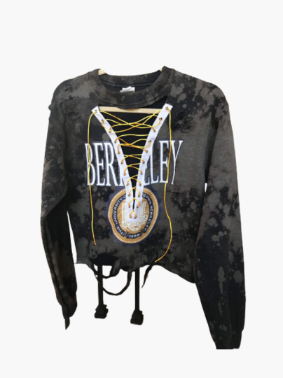 Handmade University of California Berkeley Lace Up Distressed Sweatshirt