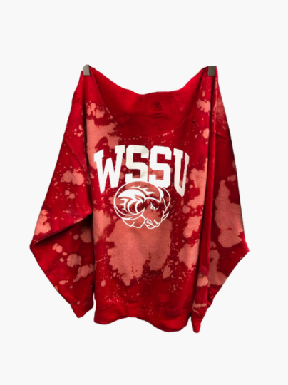 Handmade WSSU Ram Head Off-Shoulder Fleece Sweatshirt