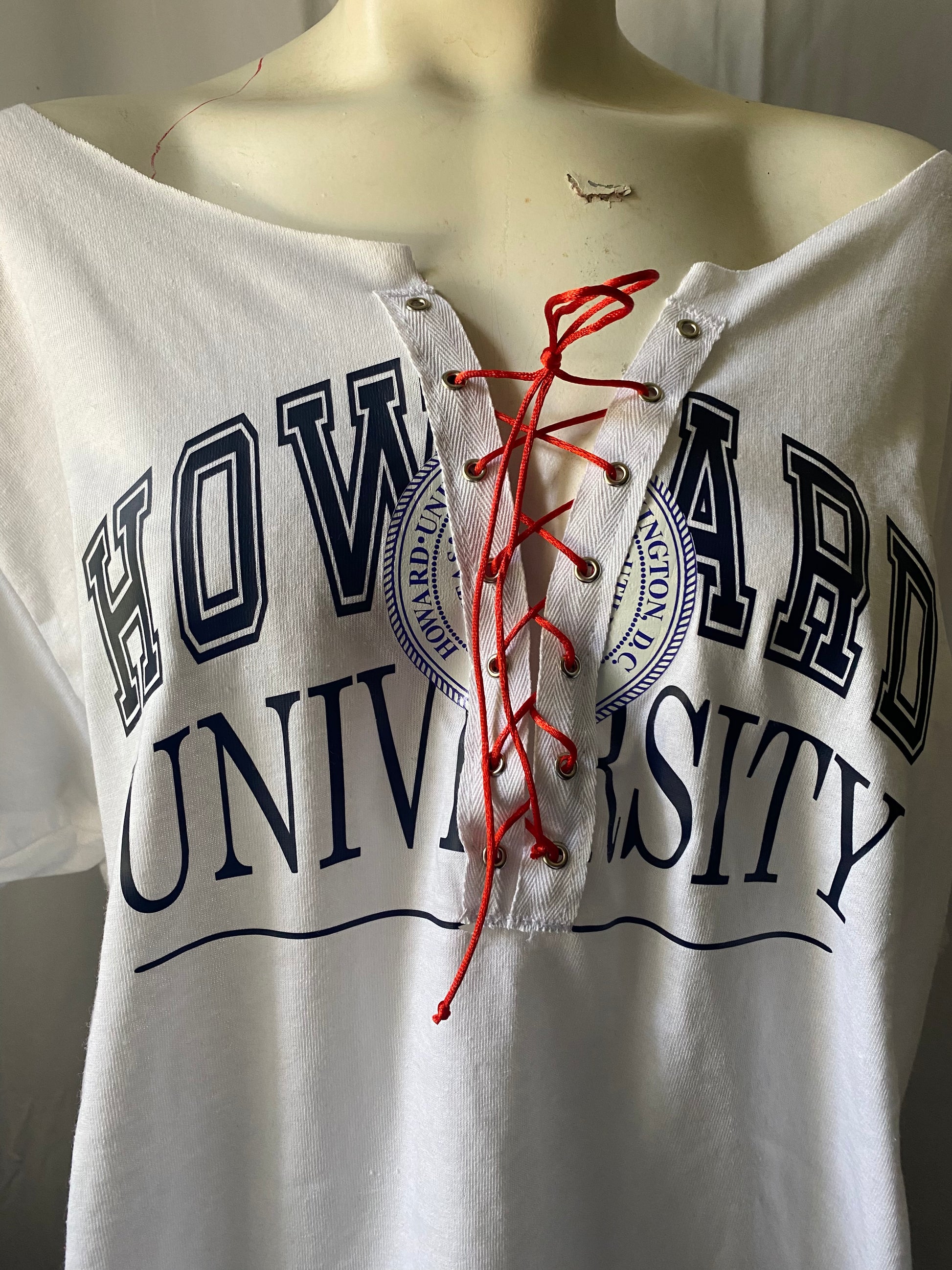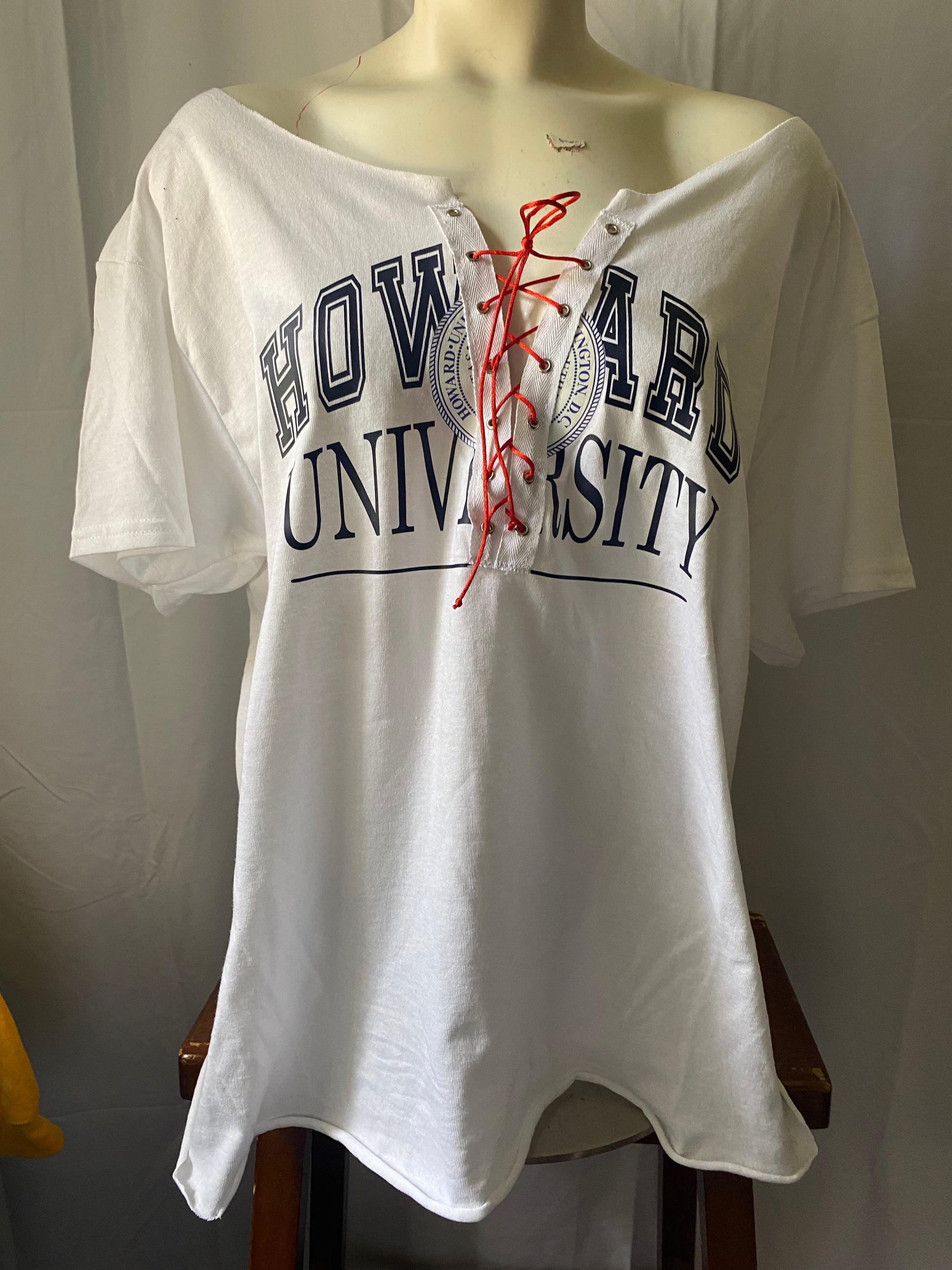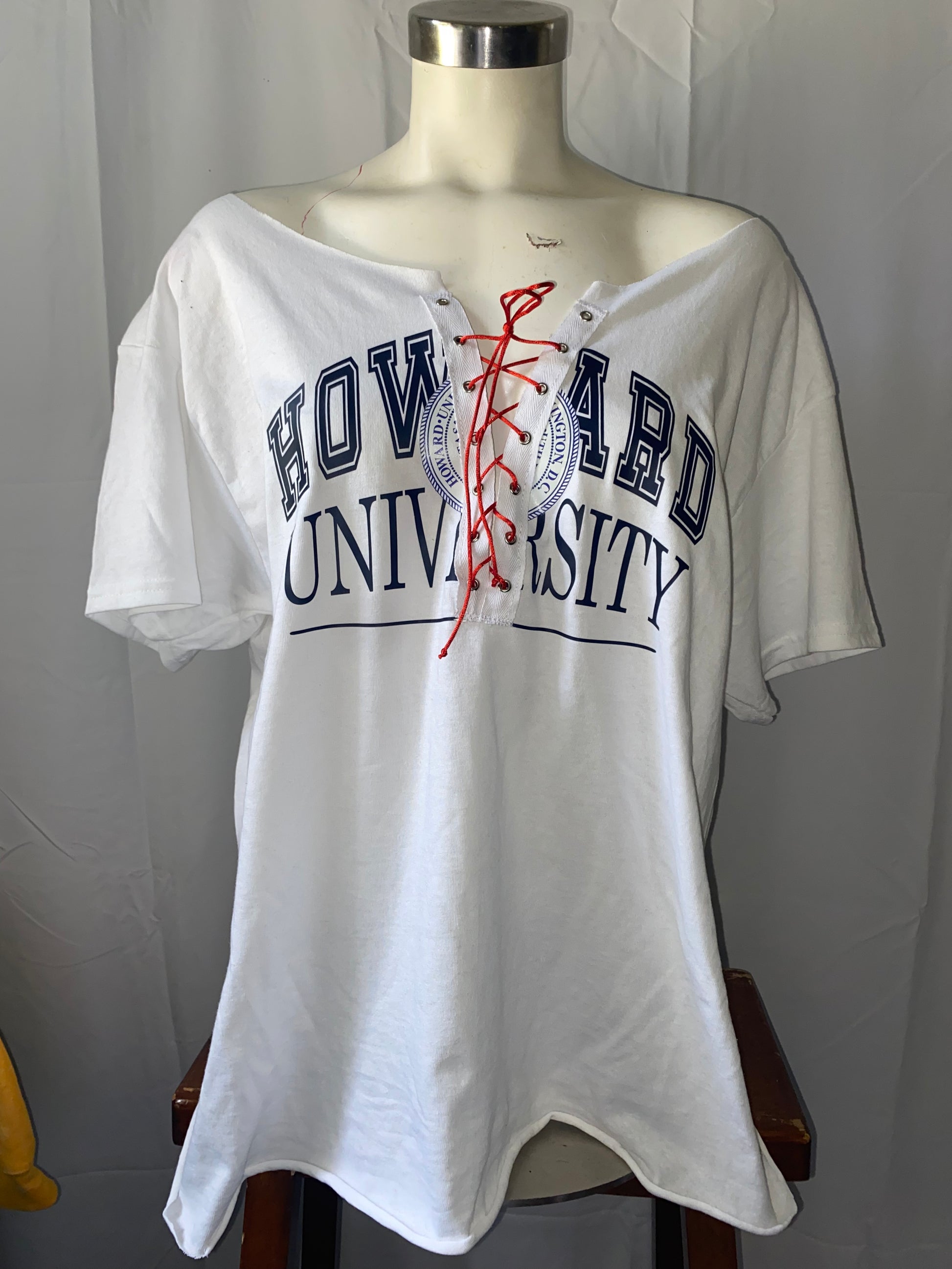 A fashionable twist on the classic Bookstore T-Shirt, this lace-up is a perfect choice for homecoming and reunions! This item is hand-sewn by Cami and her design team in Atlanta, Georgia.