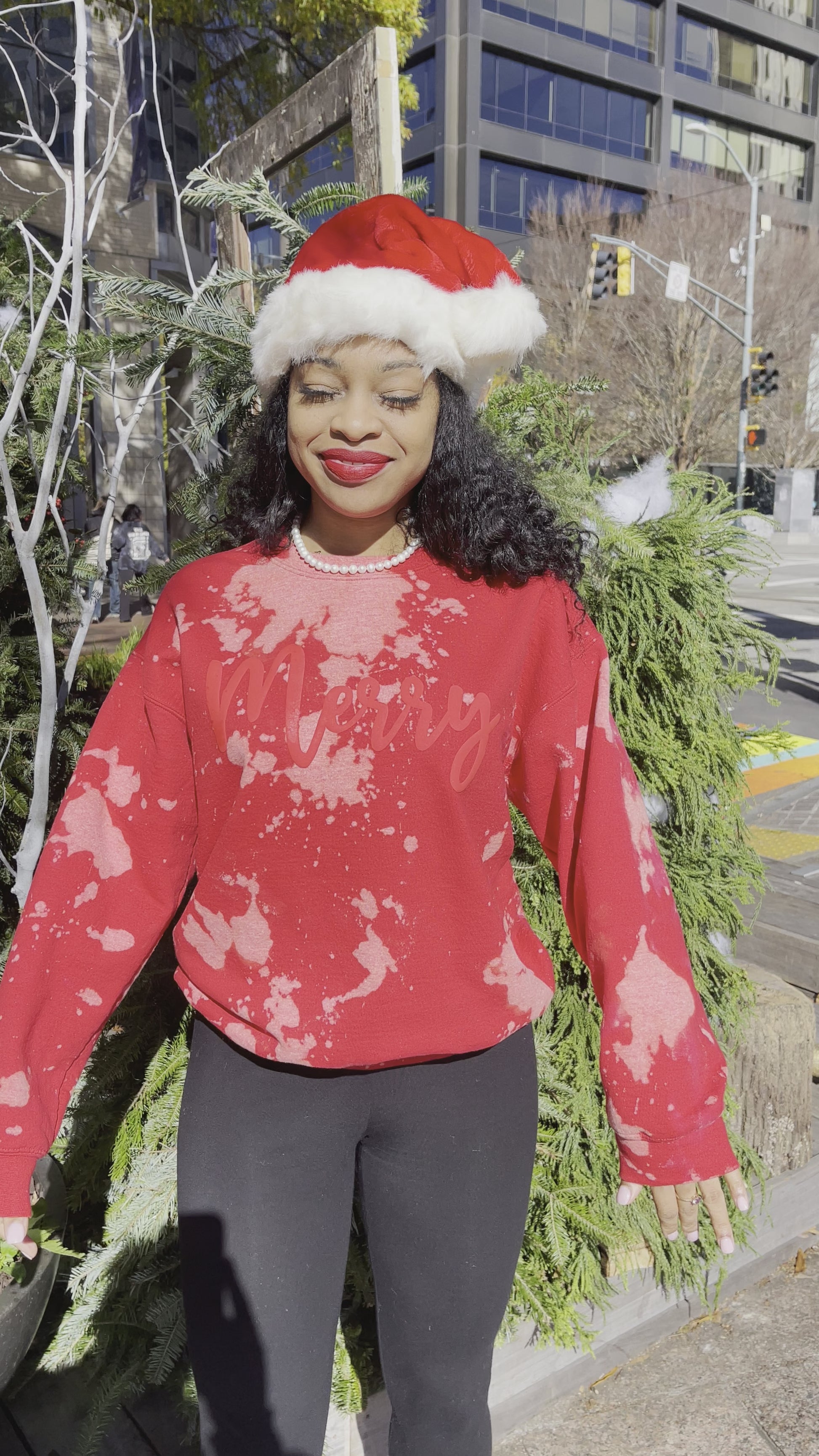 Elevate your holiday style with our exclusive handcrafted creation, the "Red Hot Merry & Bright Hand Bleached Holiday Sweatshirt". Designed and meticulously hand-bleached by Cami and her talented team in Atlanta, GA, this sweatshirt embodies the spirit of the season with a touch of handmade charm.