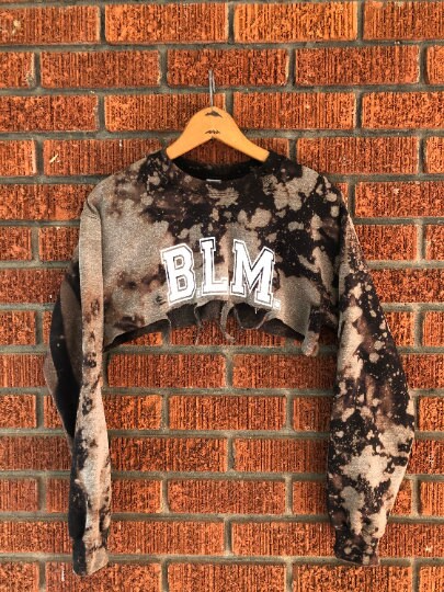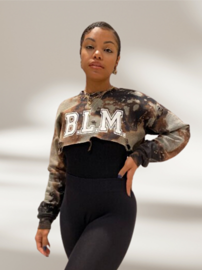 Support a Cause! Bold B.L.M. (Black Lives Matter) Handmade Crew Neck or Off Shoulder Super Crop Sweater