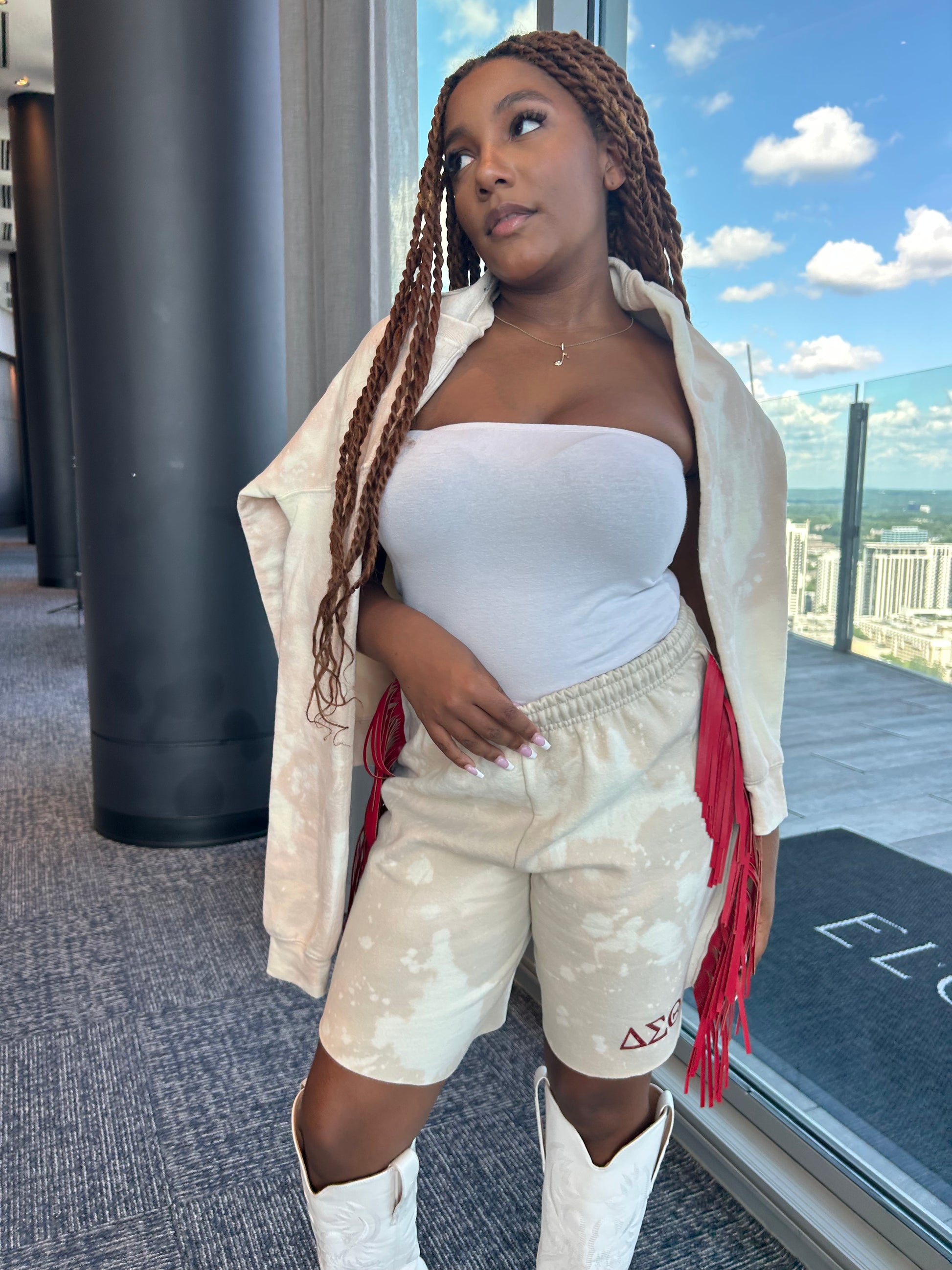 - Cozy sweatshorts meet showstopping sparkle fringe — for the girls who love a little yeehaw with their lounge.